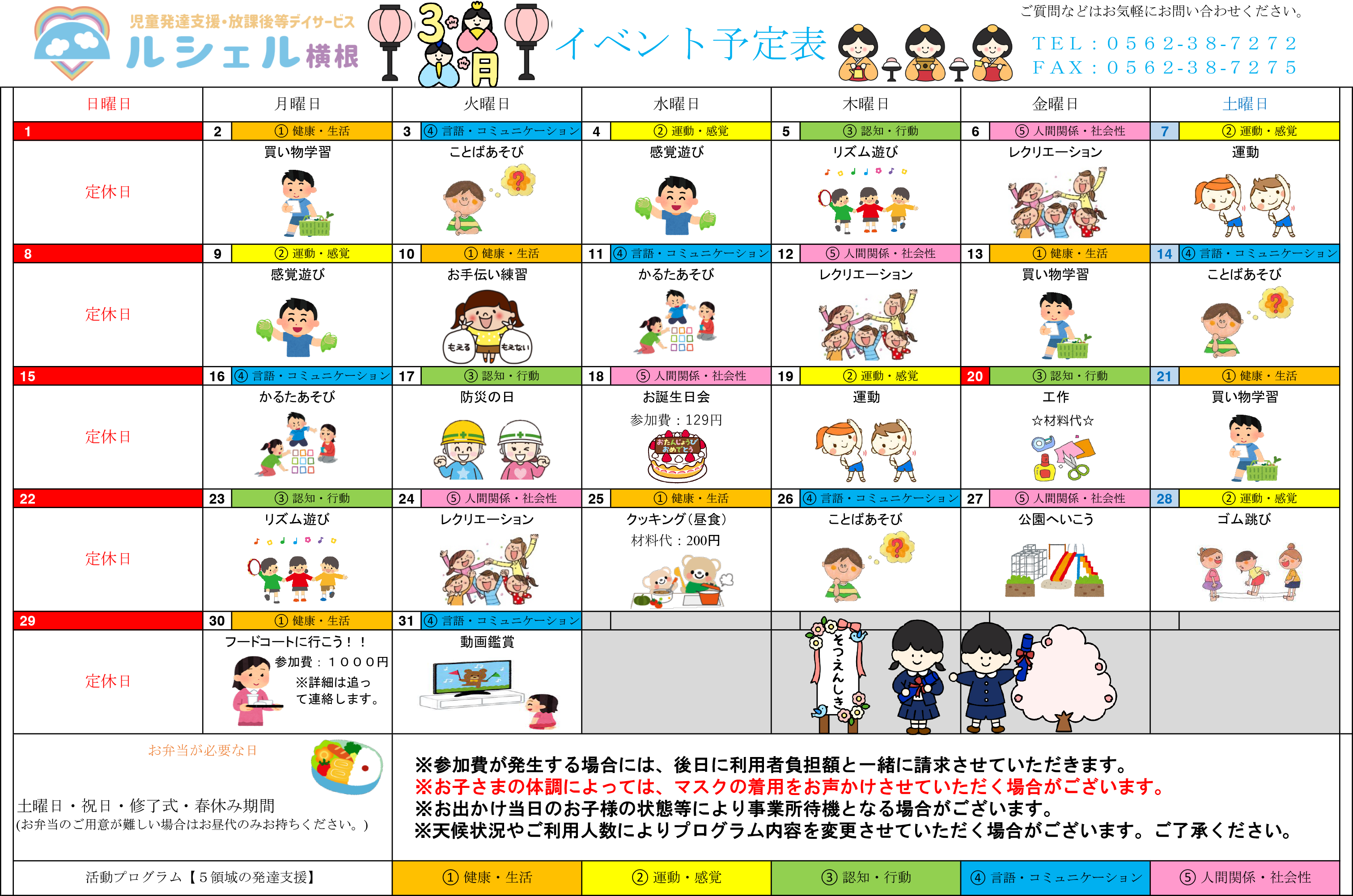 昼食作りやお菓子作り、レクリエーション、遠足、季節ごとの楽しいイベントなどが盛りだくさんです。