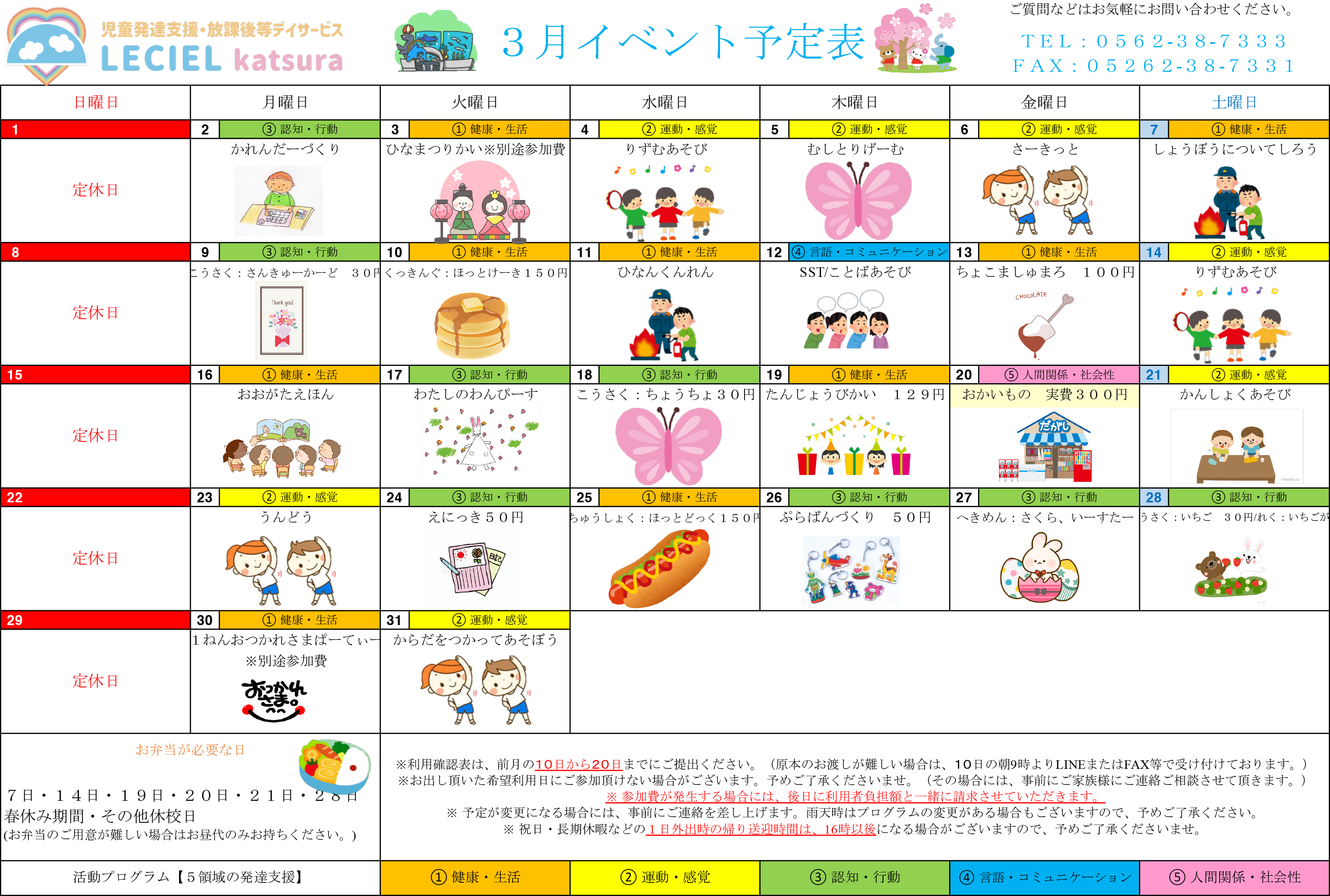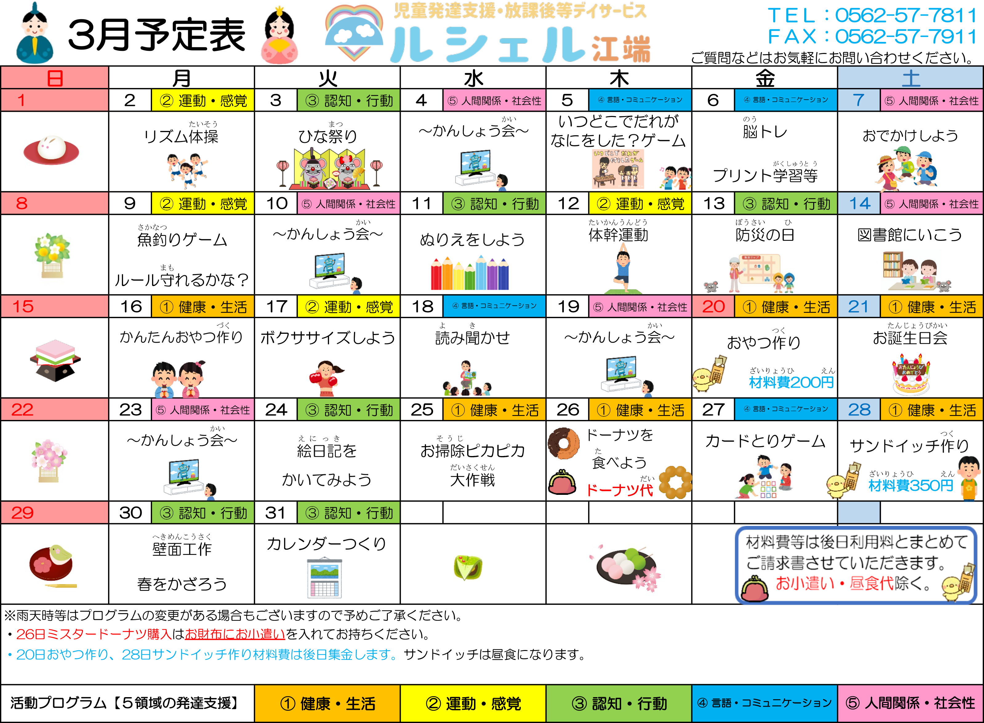 昼食作りやお菓子作り、レクリエーション、遠足、季節ごとの楽しいイベントなどが盛りだくさんです。